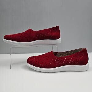 Munro Ridley Sneaker Womens 9 Red Nubuck Slip On Comfort Perforated Loafer