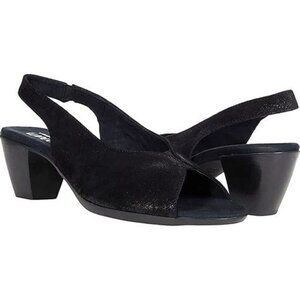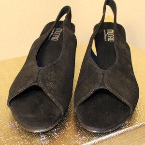 These suede comfort heels are made of a beautifully soft, metallic black suede.