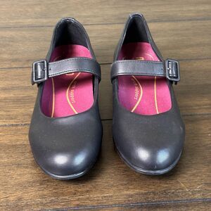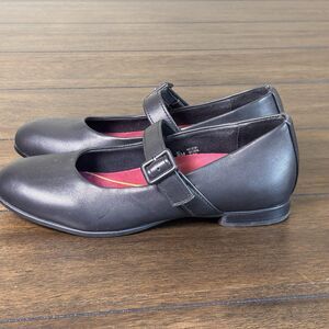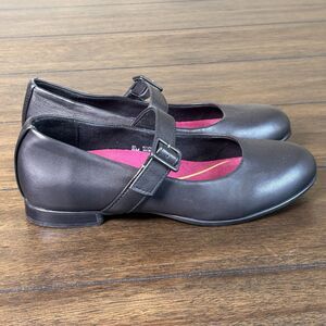 Munro Size 8 M Black Leather MJ Flat Mary Jane Shoes Block Heel