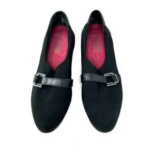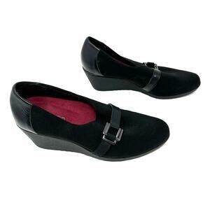 Munro Size 8.5 Shoes Black 2" Wedge Heel Leather Buckle Formal Business Work