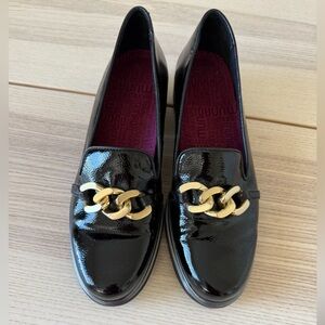 Munro WOMEN'S VIV BLACK CRINKLE PATENT LOAFER Chain Detail size 11 M