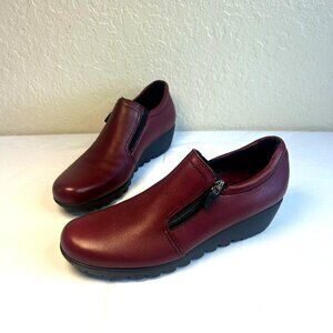 Munro Wedge Sz 7 Burgundy Leather Round Toe Walking Slip On Side Zipper
