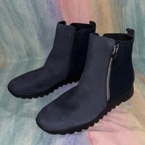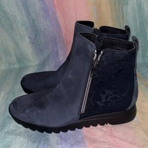 Munro Women's Ashcroft Blue Nubuck & Floral Fabric size 9.5 Extra Light 2 Zips