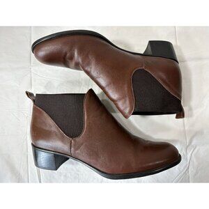 Munro Womens Shari Boot Size 9.5 Brown Leather Chelsea Bootie Block Heel Pull On