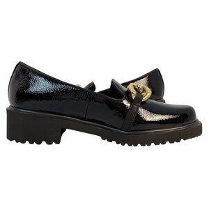 Munro Women's Viv Black Patent Leather Gold Accent Platform Loafer Size 5 M