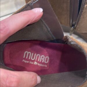 Munro size 7.5 Brown Suede Ankle Boots comfort insoles zip side wedge worn once