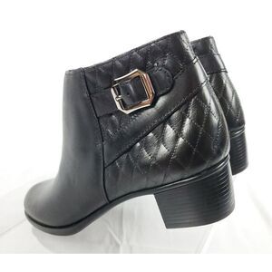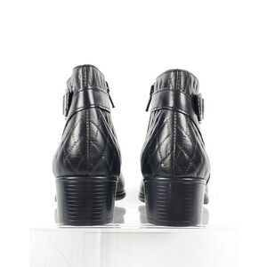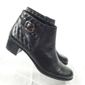 Munro Black Leather Ankle Boots low heel cross stick detail ankle buckle 7N