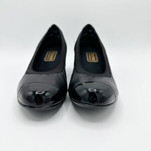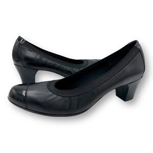 Munro Black Leather and Patent "Odette" Cap Toe Pumps Heels Sz Comfort 7.5M