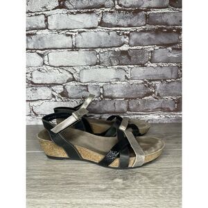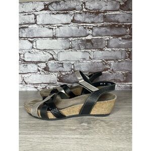 Munro Eden Black Sliver Snakeskin Slingback Cork Wedge Sandals Women 8.5M US/39