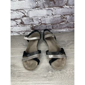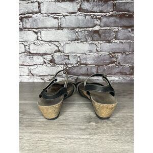 Selling Munro Eden Black Sliver Snakeskin Slingback Cork Wedge Sandals Women’s sz 8.5M US/39EU