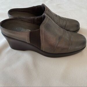 Munro Womens Walking Wedge Slip On Mules Clogs Shoes Leather Metallic Used 6.5