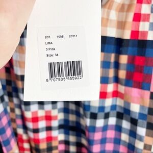 Munthe Lima Check Poplin Flocked Long Sleeve Plaid Metallic Blouse Casual Work