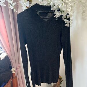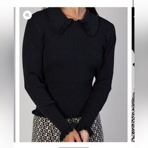 Munthe Ruffle Knit Black and Gold Textured Knit Blouse 🖤