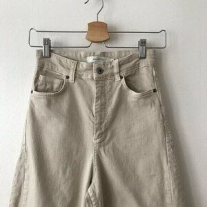EUC; Munthe Beige Wide Leg Raw Hem Crop Denim Jeans