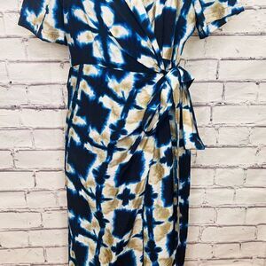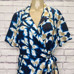 Munthe Womens Multicolor Tie Dyed Short Sleeves Apusta Wrap Dress Size 42