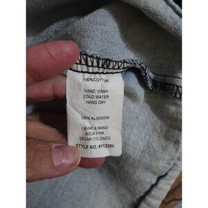 Roomy, cute, unique, light wash denim, 100 percent cotton, good condition and quality