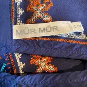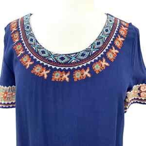 Mur Mur Mini Dress Womens Small Blue Embroidered Aztec Southwest Short Sleeve