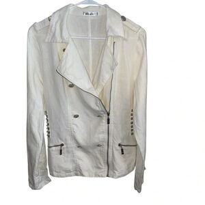 Mur Mur white studded linen double breasted moto military style zipper jacket