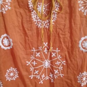 Mur Mur Sheer Embroidered Tunic Size M Orange and White V Neck with Tie