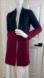 Stylish colorblock coat featuring red and black panels. Perfect for a chic look in good condition.