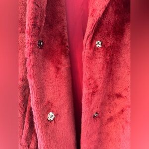 Mural Long Faux Fur Coat- Burgundy- Small