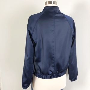 Mural Navy Bomber Jacket w/ front pockets, elastic waistband and cuffs, Sz XS