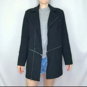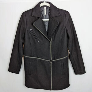 Mural Nordstrom Convertible Moto Zipper Trench Crop Over Coat Jacket Wool sz.M