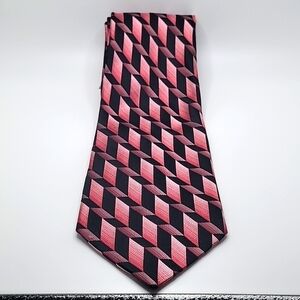 Murano 100% Silk Made in USA Pink Black Diamond Print Men's Tie