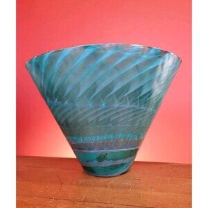 Murano Aquamarine Swirl Ocean Glass Vase Green Vintage Rare Labeled Italy Bowl