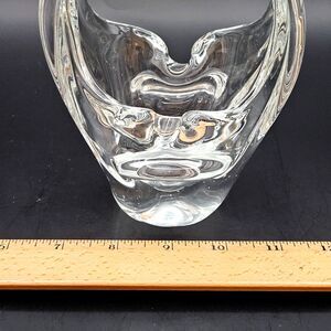 Murano Art Glass Basket Split Handle Hand Blown Clear Art Glass Vintage Abstract