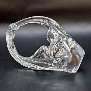 Vintage Murano art glass basket with split handle. Hand blown clear art glass. Ashtray or decorative piece. Abstract style with elegant curves.