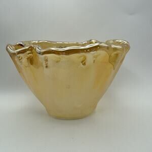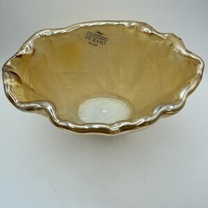 Murano Art Glass Beautiful Gold Amber Colored Ruffled Vase with sticker