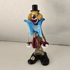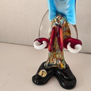 Murano Art Glass Clown Figurine 8” Hand Blown Italy Multicolor Blue Bow Hat