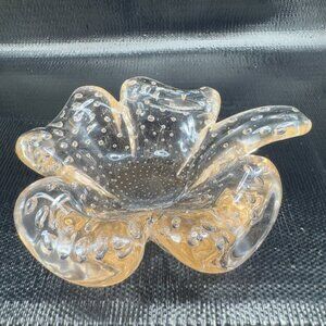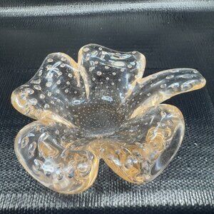Murano Art Glass Controlled Bubbles Light Pink Leaf Clover Heavy Dish Bowl VTG