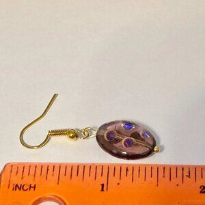 Murano Art Glass Oval Bead Earrings Czech Blue Circles Gold Plated HandMade
