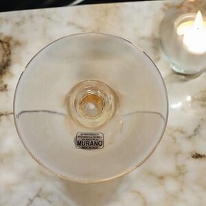 Murano Art Glass Pillar Candle Holder Italian Peach Tulips No Flaws
