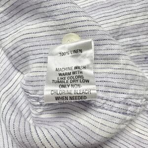 Pre-owned men’s Murano Baird McNutt 100% Irish linen stripe lavender button up shirt with single pocket detail.