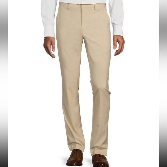 Elegant beige trousers. Perfect for formal occasions. Modern fit and design. “Little stain shown in last image .”