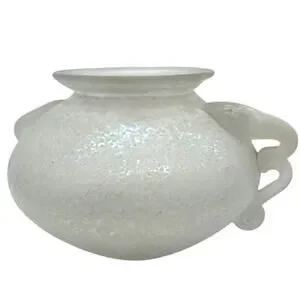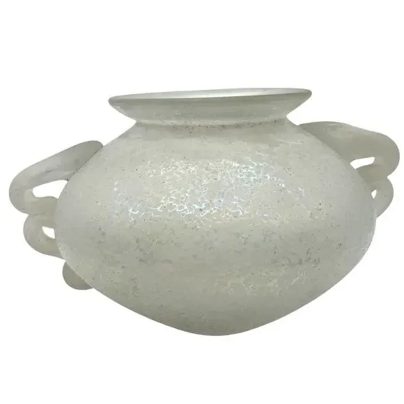 Murano Corroso Scavo Iridescent Frosted Vase Ribbon Handles 1960s Art Glass