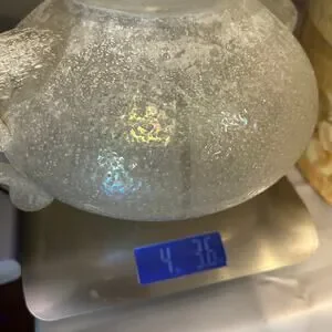 - In the Salvo Corroso style, this piece has an iridescent carnival finish made to appear corroded by applying a second finish to give it an aged look