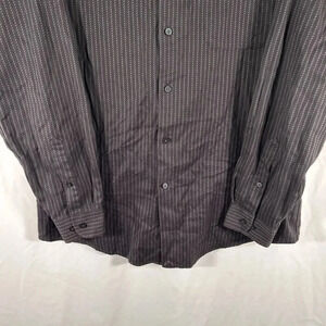Murano Dress Shirt Men's Large Black Striped Long Sleeve Button Up 100% Cotton