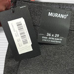Murano Evan Fit pants, mens dress pants, gray trousers, extra slim fit, stretch waistband, flat front, business casual, office work slacks, modern comfort, size 36x29, NWT
