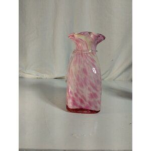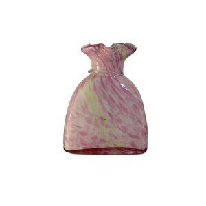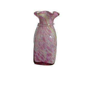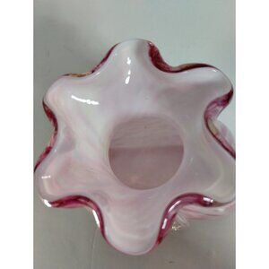 Murano GLASS Pink GREEN Stripe BAG Design VASE Scalloped TOP Edge
