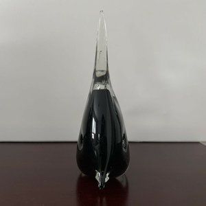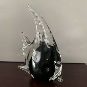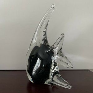 Murano Glass Art Hand Blown Glass Angelfish Clear Black Tropical Figurine 7.5"
