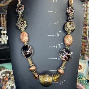 Murano Glass Beaded Statement Necklace Vintage Boho 22"