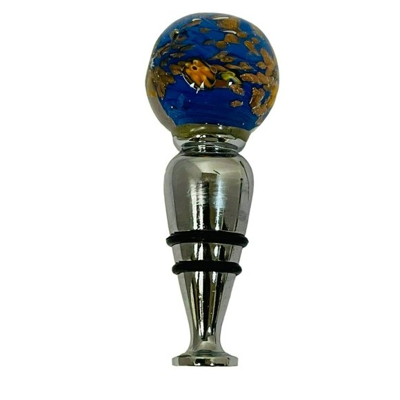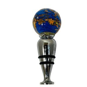 Murano Glass Blue Orange Glass Bottle Stopper Mullti Cover 3 1/3"