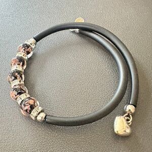 Murano Glass Bracelet Handmade In Italy Memory Wire Lampwork Beads Cuff Black Hand Blown Glass. Like new, adjustable size given design.