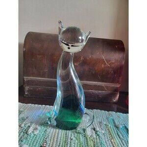 Murano Glass -Felix the Cute Kitten in Aquamarine Murano Glass