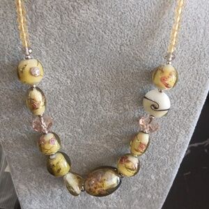 Murano Glass Gold and Cream Beaded Necklace 16"