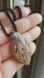 The leaf shaped glass pendant hangs on a black suede cord that ties in the back to adjust the length to your preference. It can be worn as a choker or longer.